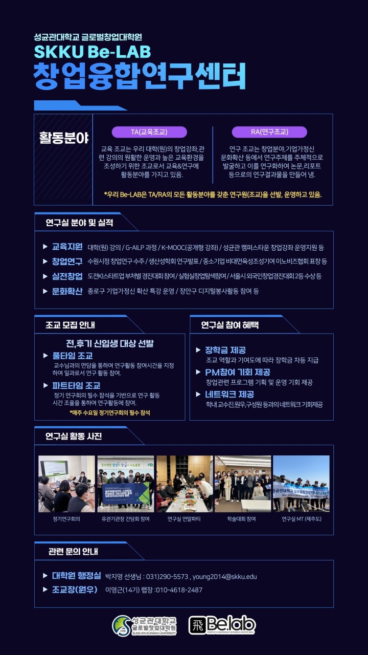 안녕하세요. 글로벌창업대학원 행정실입니다. 2014년 9월 1일 개원하여 실전창업과 창업학연구를 중심으로 세계적인 창업가와 창업컨설턴트를 양성하고 있습니다. 재학 중인 원우님께서 생생하게 들려주는 성균관대학교 글로벌창업대학원만의 특장점이 기사화되었습니다. 아래 인터뷰 기사 주목해주세요! https://news.unn.net/news/articleView.html?idxno=534747Read More