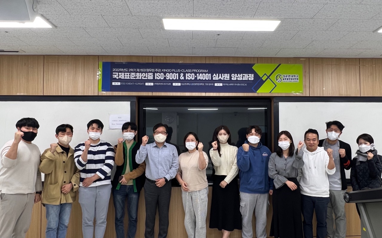안녕하세요. 글로벌창업대학원 행정실입니다. 글로벌창업대학원에서는 원우 네트워크와 실무능력 향상공동교육 운영 프로그램인 ‘KINGO-PLUS Program : ISO(KSCA 인증원)’가 진행 중입니다. ▶ 총 2개 분야 ISO 9001(품질)+14001(환경) 심사원보 교육 ▶ 교육인원 : 11명 신청 ⁉KINGO-Plus Program 이란? 글로벌창업대학원과 15대 원우회가 운영하는 공동교육프로그램으로서 우리 대학원 커리큘럼 이외 영역에서 원우들의 학업과 네트워킹 증진에 도움이 되는 외부교육을 공동으로 운영하는 프로그램입니다. Read More