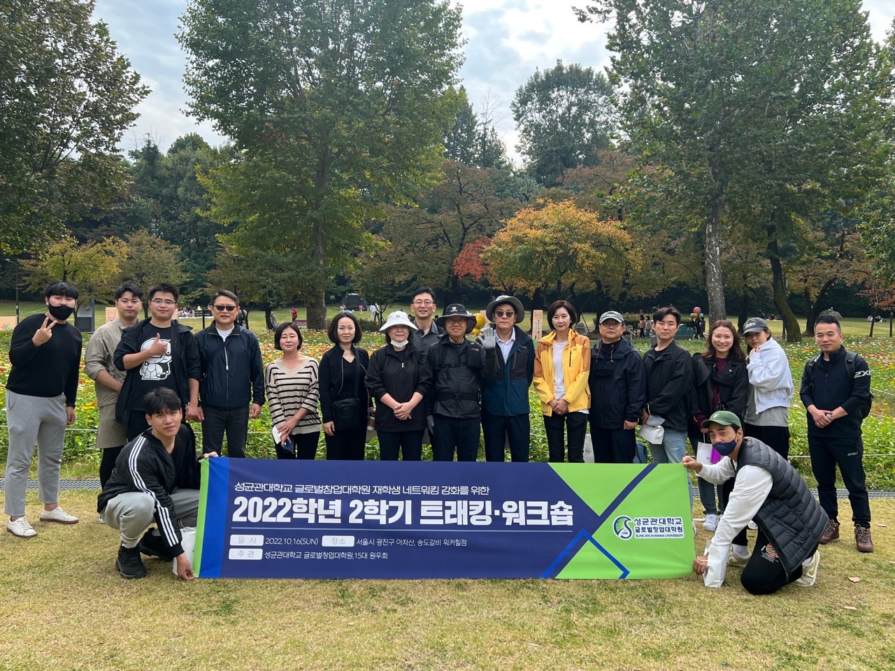 안녕하세요. 글로벌창업대학원 행정실입니다. 지난 10월 15일 글로벌창업대학원 추계 트래킹·워크숍이 진행되었습니다. 이번 네트워크 행사는 ‘서울어린이대공원’ 및 광진구 일대에서 진행되었습니다. 글로벌창업대학원 교수님들과 약 20여명의 재학생 원우님, 글로벌최고기업가정신과정(G-AEP) 4기 회장단이 참석하여 참석하여 자리를 빛내 주셨습니다.:) 🆙행사 참여에 대한 원우회 감사의 말. 안녕하세요. 15대 원우회장입니다. 15대 원우회의 임원진을 대표하여 이번 워크숍•트래킹 행사에 참여해주셔서 감사드립니다. 행사가 일요일에 진행되었음에도 우리...Read More