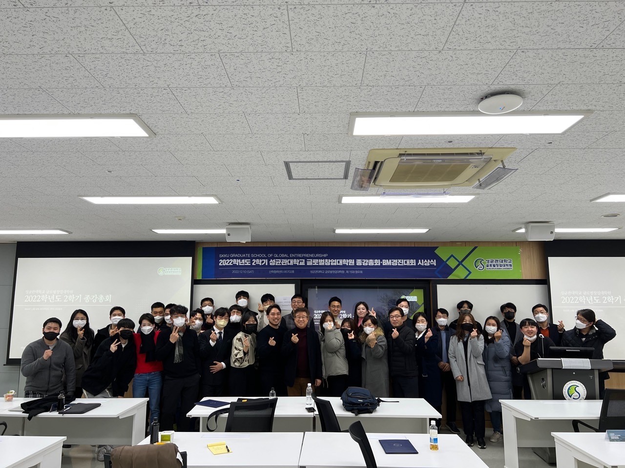 안녕하세요. 글로벌창업대학원 행정실입니다. 12월 10일(토), 산학협력센터에서 2022. 2학기 종강총회를 개최하였습니다. ▶15대 원우회 활동 및 회계보고 ▶16대 원우회장 선출 ▶2022학년도 비즈니스모델 경진대회 시상식 ▶2022학년도 모범원우 표창장 전달식 2022학년도 2학기 동안 모두 고생하셨습니다. 며칠 남지 않은 2022,임인년(壬寅年) 마무리 잘하시고 새롭게 다가오는 2023,계묘년(癸卯年)도 대박나는 한 해를 기원합니다. 감사합니다. Read More